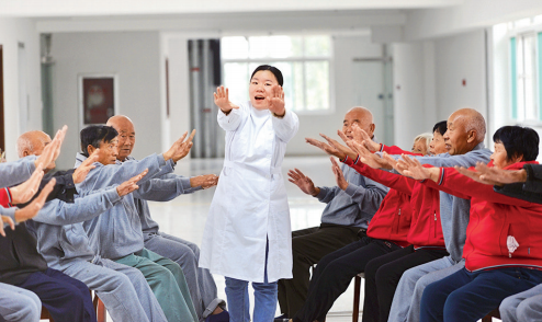 △老人在养老院做健身操