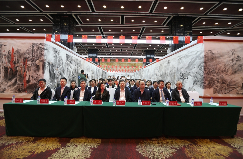 赵明仁在致辞中深情分享了《人民英雄杨靖宇》《东北抗联铁血少年》两幅百米组画的创作背景与历程,生动诠释了作品中描绘的东北抗联故事、英雄形象,以及画作所彰显的东北抗联精神内核。