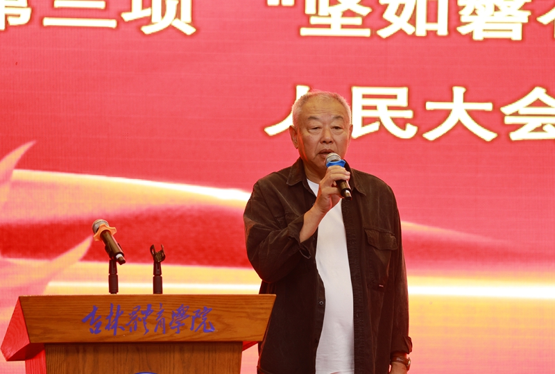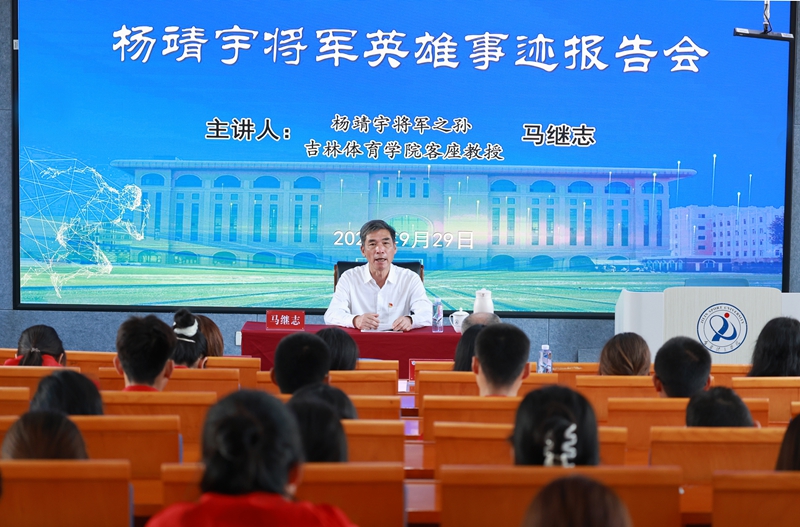 开幕式后,吉林体育学院以“主会场+分会场”形式举办了“吉体红色讲堂”。马继志为全体学子深情讲述了杨靖宇将军的英雄事迹,真挚的情感与动人的故事令在场师生深受触动、备受鼓舞。同学们纷纷表示,要以杨靖宇将军为榜样,把爱国之情化为报国之行,把理想信念转化为学习和训练的动力,为实现中华民族伟大复兴的中国梦贡献青春力量。吉林体育学院副校长武红军主持报告会。